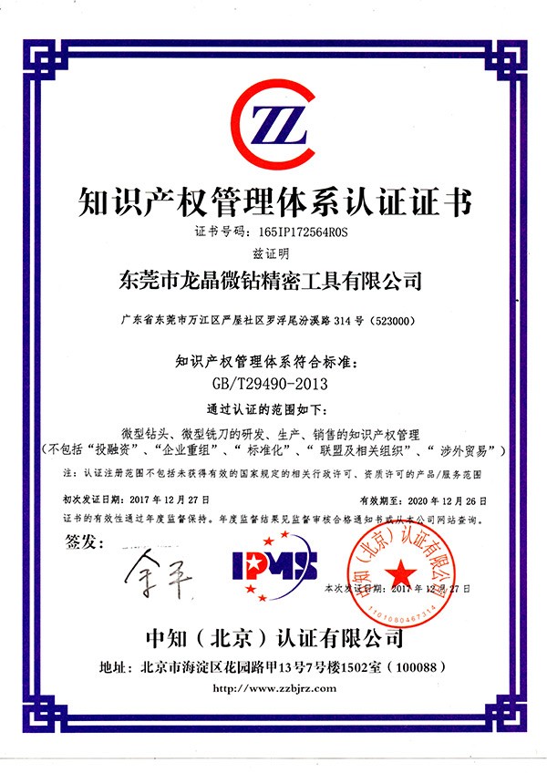 龍晶知識(shí)產(chǎn)權(quán)體系證書(shū)